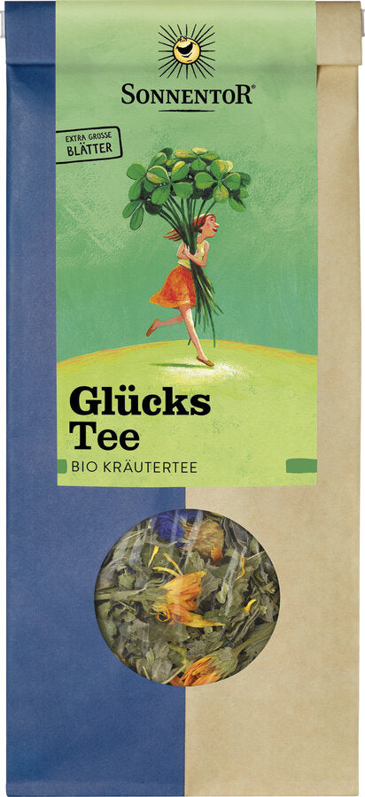 Lust auf eine Tasse voll guter Laune? Dann ist der GlücksTee lose von Sonnentor genau das Richtige! Diese harmonische Bio-Kräuterteemischung kombiniert Apfelminze, Pfefferminze, Zitronenmelisse, Ringelblumen, blaue Malve und Kornblumen zu einem erfrischend-minzigen und zugleich blumigen Geschmackserlebnis. Der Duft allein lässt den Alltag verblassen und schenkt dir einen Moment des Innehaltens – ganz im Sinne von Achtsamkeit und Genuss.
